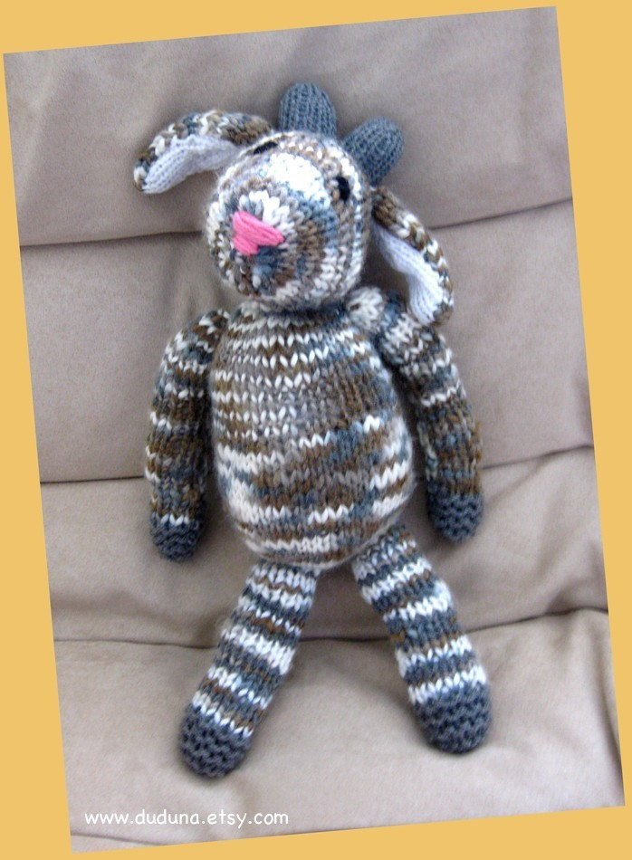 The toy is around 17 inches tall (the size of the toy depends on the size of the yarn and knitting needles as well as on how tightly you are knitting)